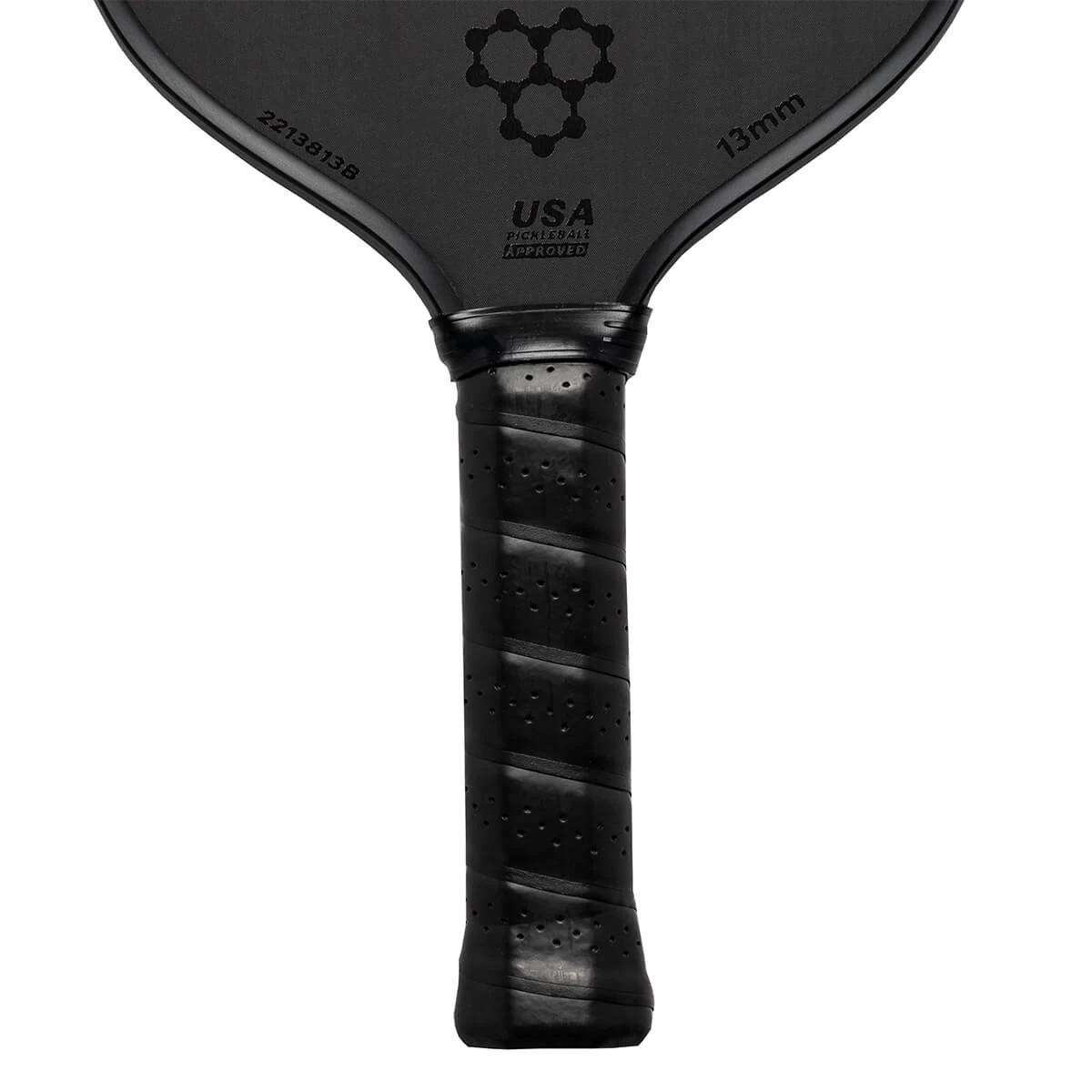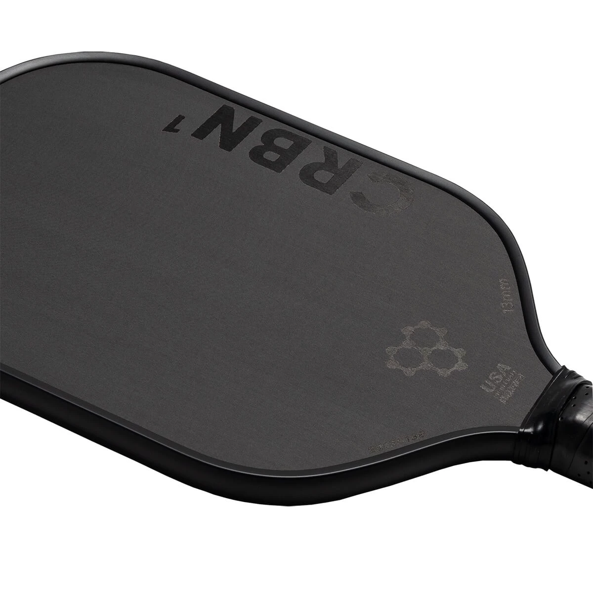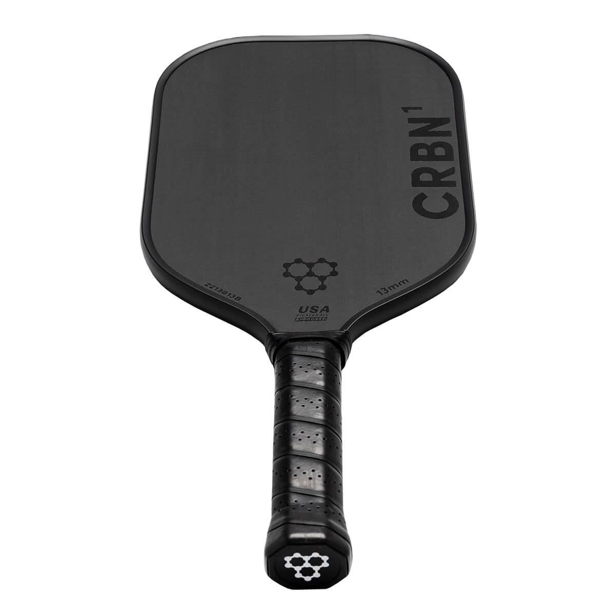 USAP Approved models of the CRBN¹ 13MM Middleweight Carbon Fiber Pickleball Paddle will feature a unique serial number near the throat of the paddle on one side of the face, left of the USAP Approved certification.