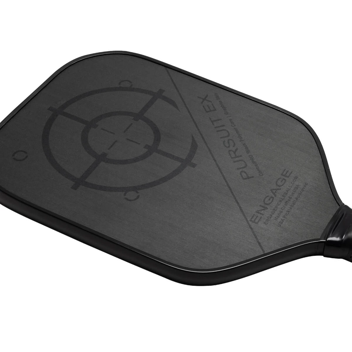 The Pursuit EX is the first graphite pickleball paddle released by Engage and is available in two different core thicknesses. The graphite face is developed specifically for the paddle to work with their black core, which is developed to be the softest core on the market. The graphite face features a rough texture that is built to last since it is a part of the paddle face/skin and not an overlaying texture. The graphite face is designed to increase friction and allow the ball to stay on the paddle longer. The combination of the black core and the graphite face give this paddle unmatched control, spin, and feel.
