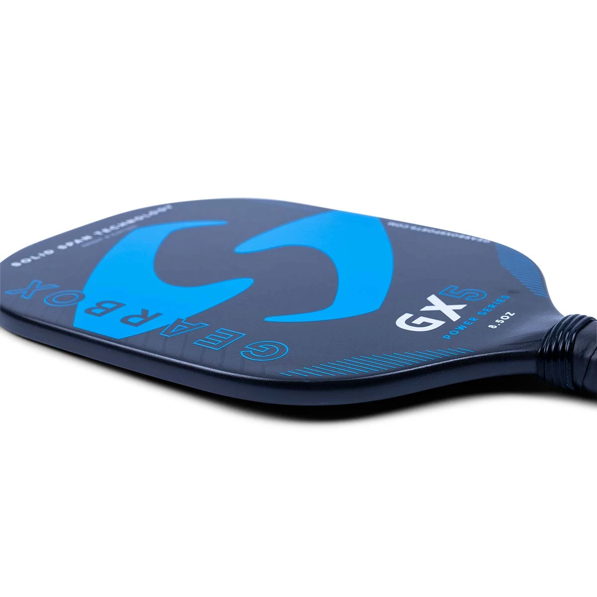 The Gearbox GX5 power features a one-piece design made out of carbon fiber. The solid span technology provides the GX5 with unmatched performance and paddle responsiveness. Even though this paddle is packed with power, the carbon fiber design makes it incredibly soft and quiet. The GX5 is unique compared to the majority of other pickleball paddles because it does not feature a honeycomb core. The GX5 is also edgeless, which makes the paddle aerodynamic and increases the overall sweet spot. This GX5 power model is a heavyweight model with an average weight of 8.5oz.