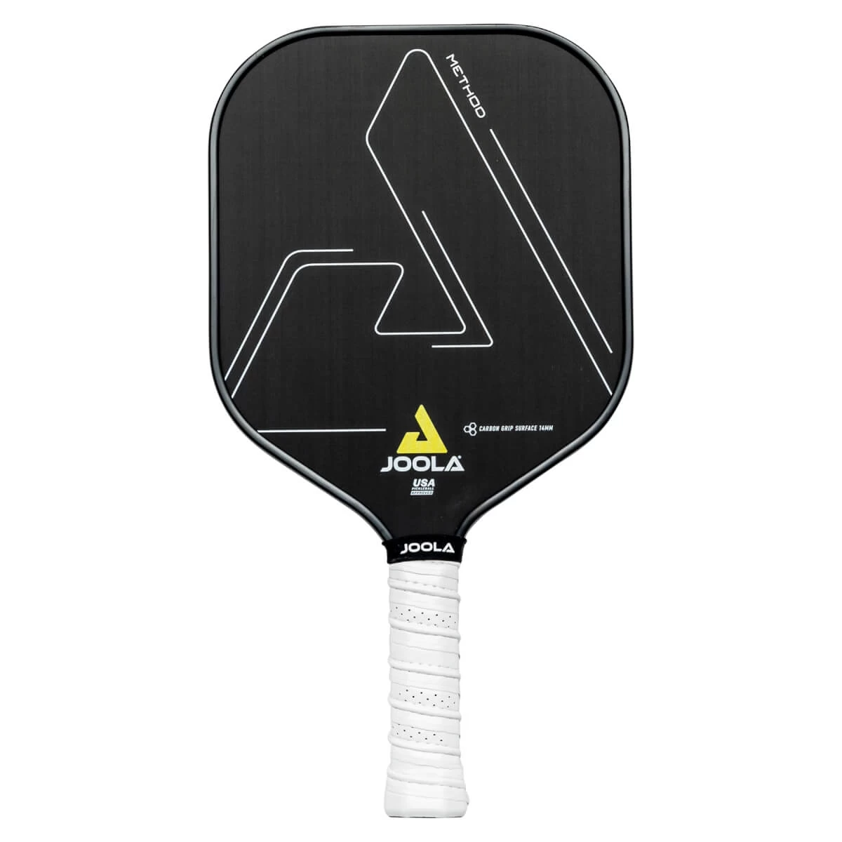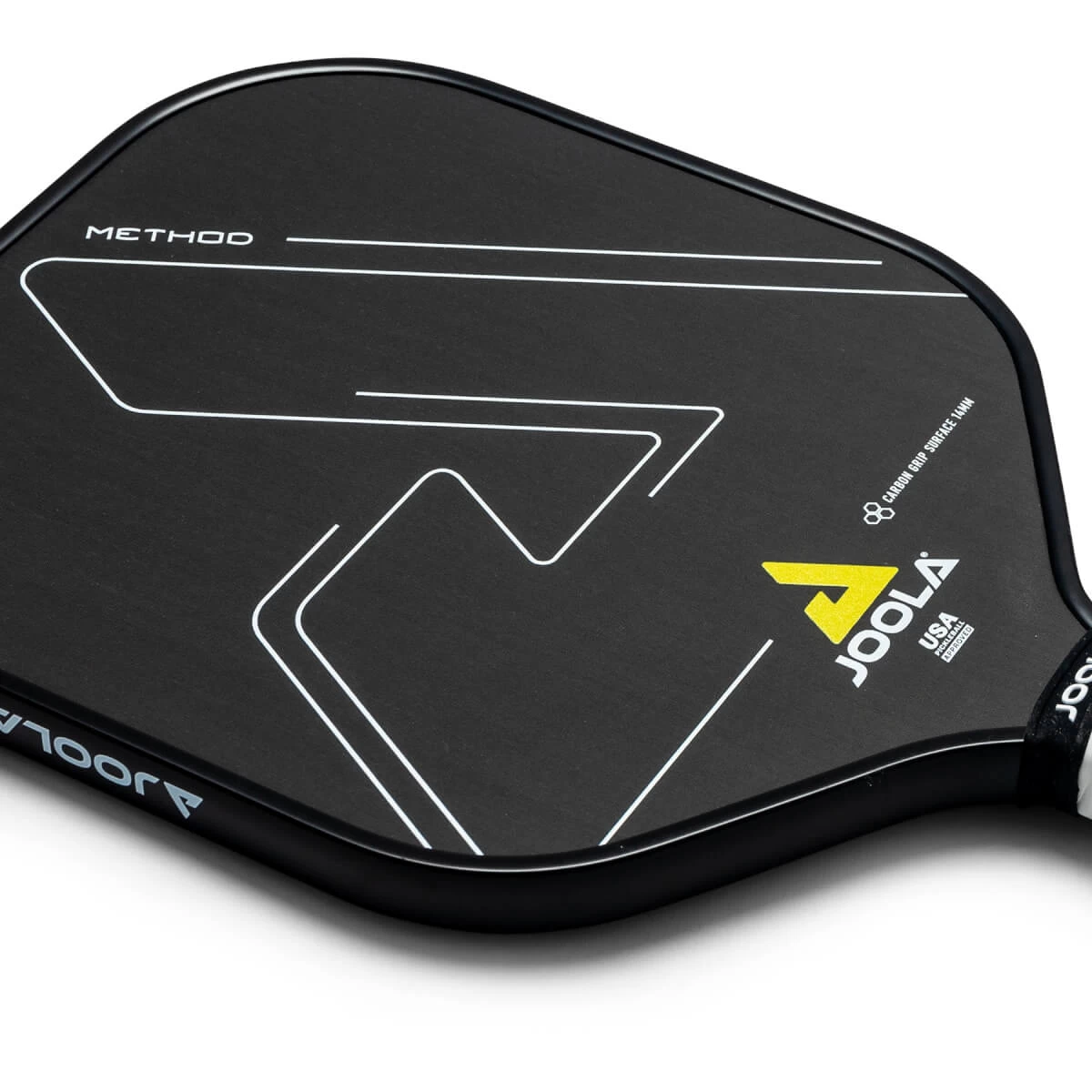 Take the performance to your court, with the JOOLA Method CGS 14mm Middleweight Carbon Fiber Pickleball Paddle. A wide body at 8 2/5” pickleball paddle with a 14 mm Response Polymer core for increased control and reduce vibration, this paddle from backline to kitchen line provides for an increased spin and power. The Carbon Grip Surface technology utilizes a durable, long-lasting carbon-Flex 3 textured surface that grips the ball to create more spin on each shot. A Thin Grip at 4” gives a player mobility and reach with a long handle at 5 1/2”. Take your game to the next level with the JOOLA Method CGS 14mm Middleweight Carbon Fiber Pickleball Paddle!Â