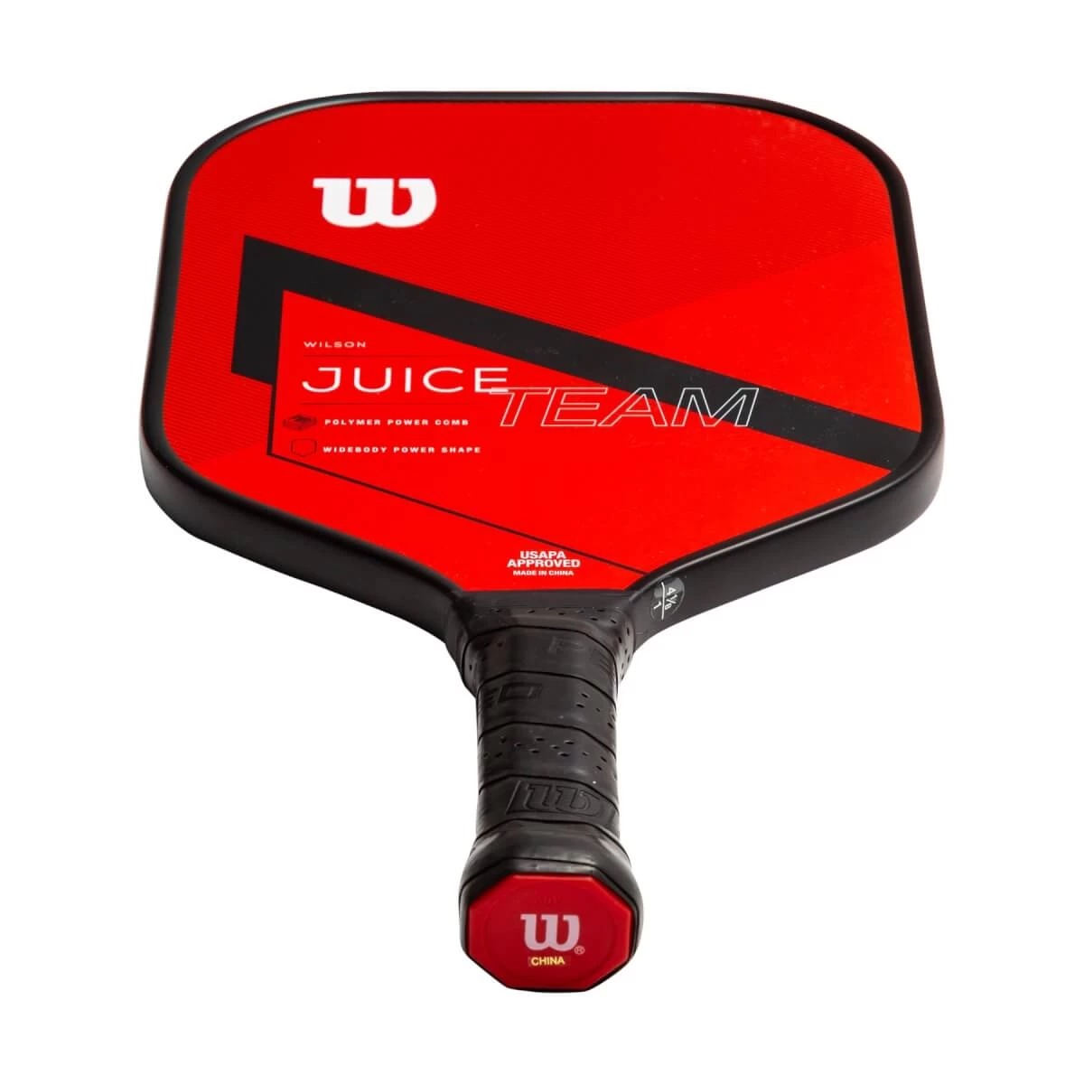 Same great Wilson products, now join the Team with the Wilson Juice Team Middleweight Composite Pickleball Paddle! A great entry-level pickleball paddle, the wide body shape, and composite constructions the Wilson Juice Team Middleweight Composite Pickleball Paddle will give you everything needed to take the court.